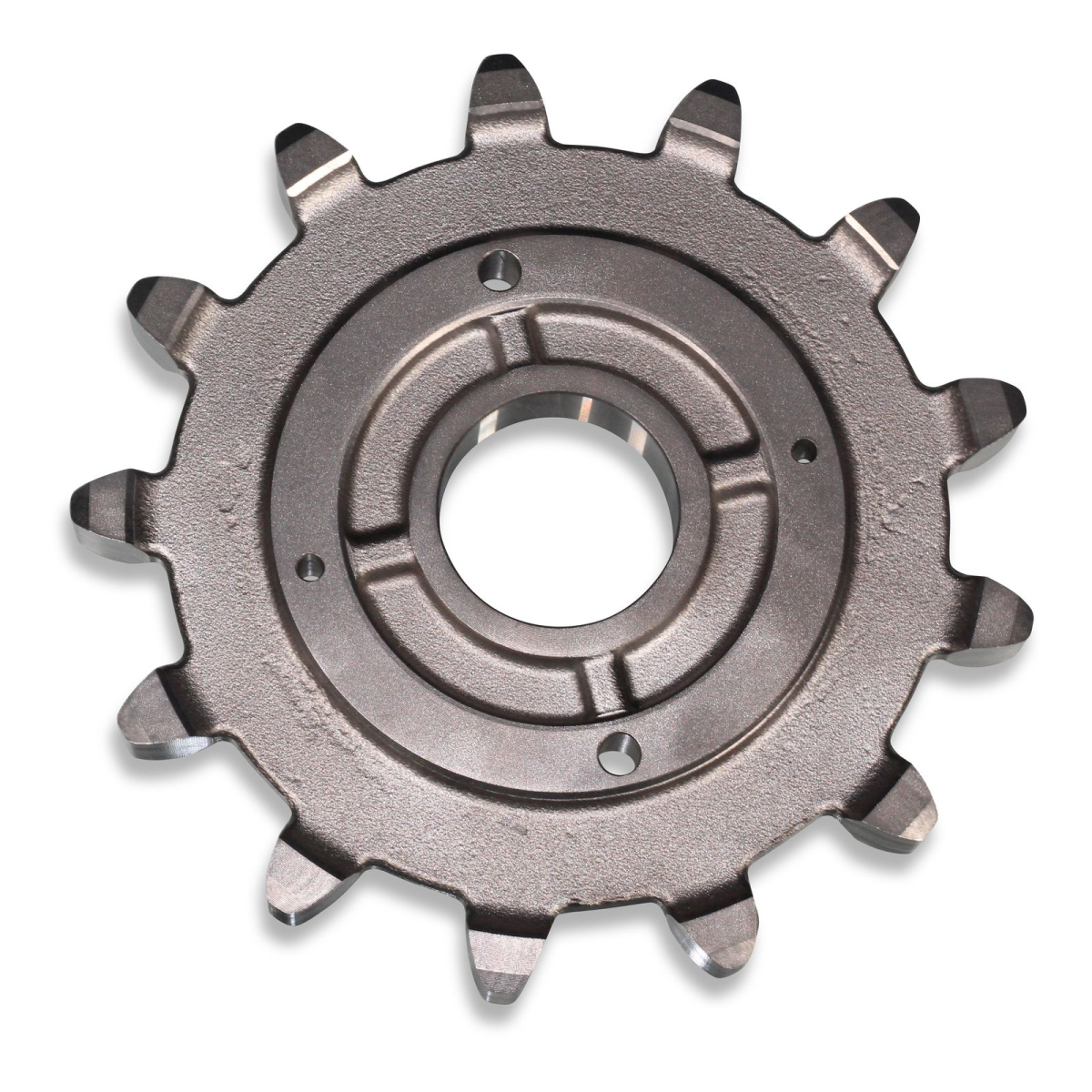 Шестерня приводу ланцюга (обертова), 10-00-9543, сталеве лите зубчасте колесо з тринадцятьма зубами, з отвором по центру для валу діаметром 45 мм, призначена для руху кормораздаточной ланцюга в системі ланцюгового годування в птахівництві. Висота 18.00 мм, Діаметр 192.00 мм, Вага 2.176 кг.Переваги та гарантія