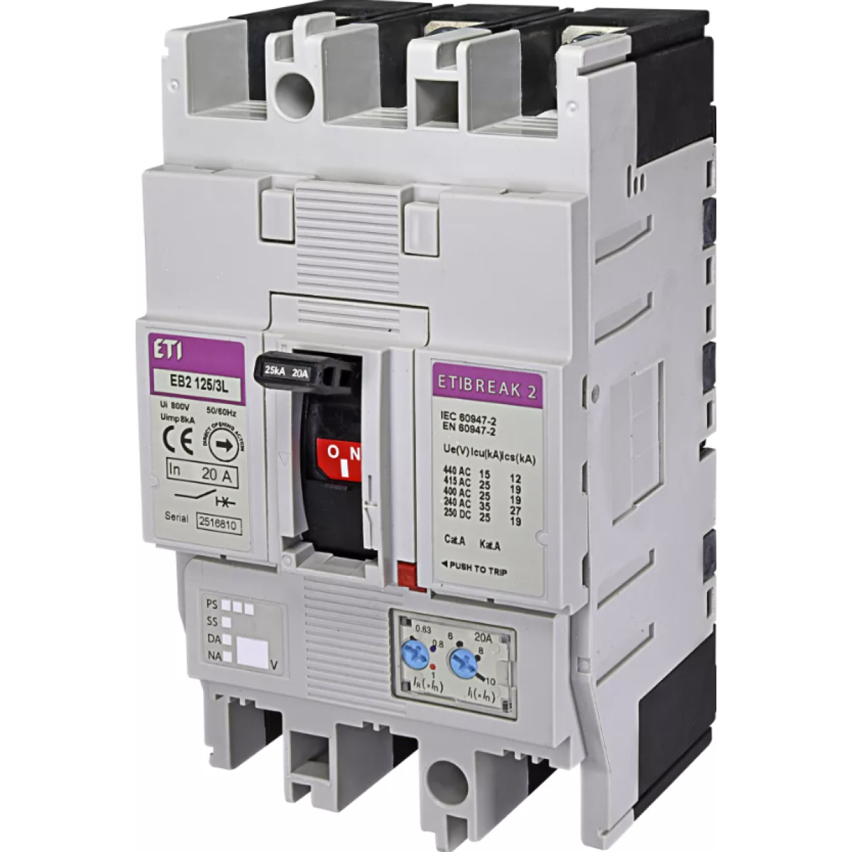 ETI Автоматичний вимикач EB2R-M 125/3L 20A (25kA, (0.63-1)In/(12)In, с блоком ПЗВ) 3P 004671513Переваги та гарантія