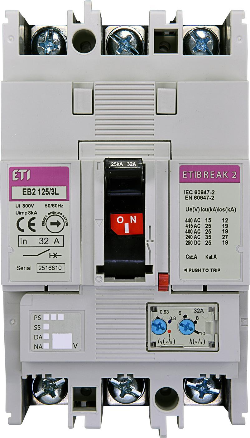 ETI Автоматичний вимикач EB2R-M 125/3L 32A (25kA, (0.63-1)In/(10)In, с блоком ПЗВ) 3P 004671514Переваги та гарантія