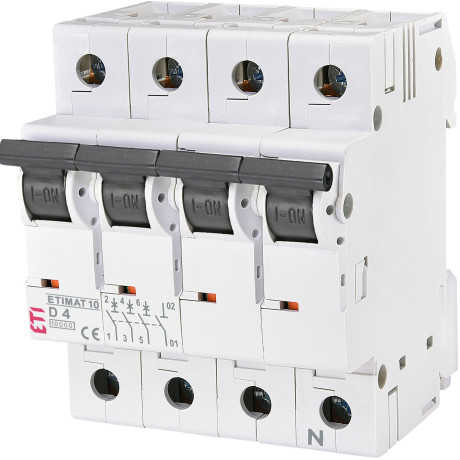 Автоматичний вимикач ETI ETIMAT 10 3p+N D 4А (10kA) (002156710)
