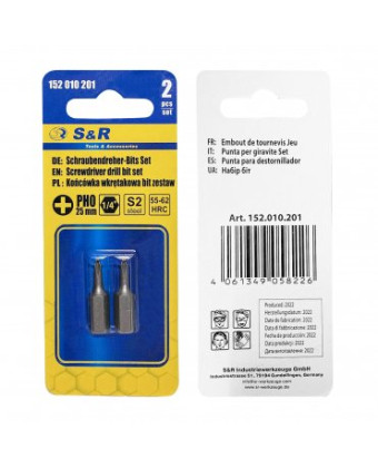 Запитання Бiта PH0 x 25 мм, сталь S2, 2 шт S&R (152010201)
