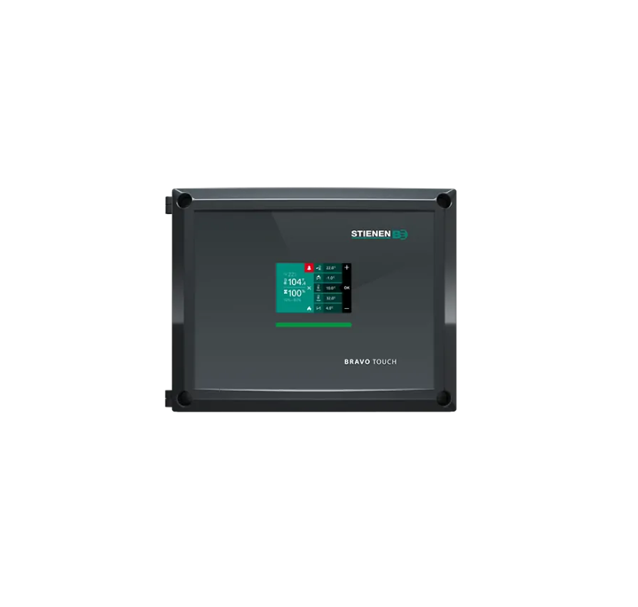 Нове покоління BRAVO TOUCH, оснащене сенсорним екраном, ідеально підходить для всіх типів вентиляції та опалення або охолодження в сучасній галузі тваринництва. BRAVO TOUCH поєднує в собі клімат-контроль з легкістю та простотою. BRAVO TOUCH пропонує гнучкість роботи з різними типами вентиляційних конструкцій. Підтримує 0-10 В або інтегроване управління TRIAC для вентиляційного обладнання з або без заслінок і керування впускним отвором повітря. Регулюйте обладнання для опалення та/або охолодження, таке як газові обігрівачі, охолоджувальні панелі, системи підігріву/охолодження підлоги або обладнання для кондиціонування повітря, не тільки до або після роботи вентиляторів на мінімальній або максимальній потужності, але й у будь-який час. Оптимізація налаштувань з часом для отримання результатів виробництва за мінімальних витрат енергії.Переваги та гарантія