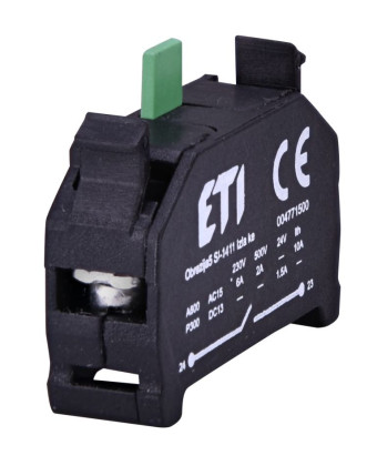 ETI Блок‑контакт E‑NC (1NC, з гвинтовими клемами) — компактний фронтальний модуль із одним нормально закритим контактом та зручним під’єднанням через гвинтові клеми. Ідеально підходить для простих сигналізаційних схем або аварійного контролю в автоматиці.Переваги та гарантія