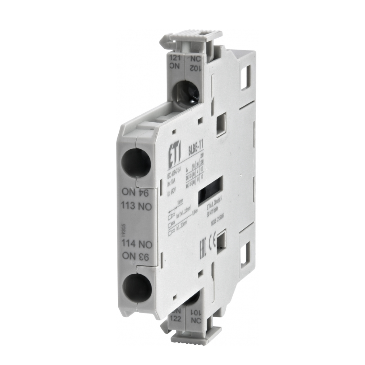 ETI Блок‑контакт BLBE‑11 (1NO+1NC, боковий, 1-й рівень, CEM450–560) — додатковий контактний блок з одним нормально відкритим і одним закритим контактом для бокового монтажу першого рівня в серії CEM450–560.Переваги та гарантія