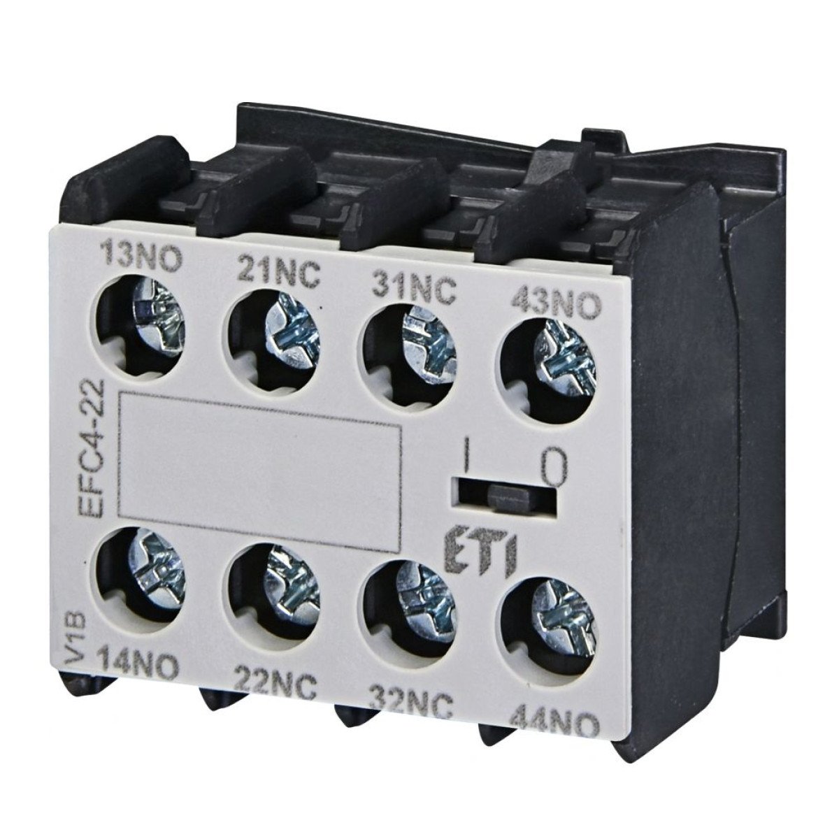 ETI Блок‑контакт EFC4‑22 (2NO+2NC, для 4‑полюсних CEC4) — фронтальний модуль із двома нормально відкритими та двома нормально закритими контактами. Ідеальне рішення для сигналізації ввімкнення та контролю аварійного стану у потужних 4-полюсних системах.Переваги та гарантія