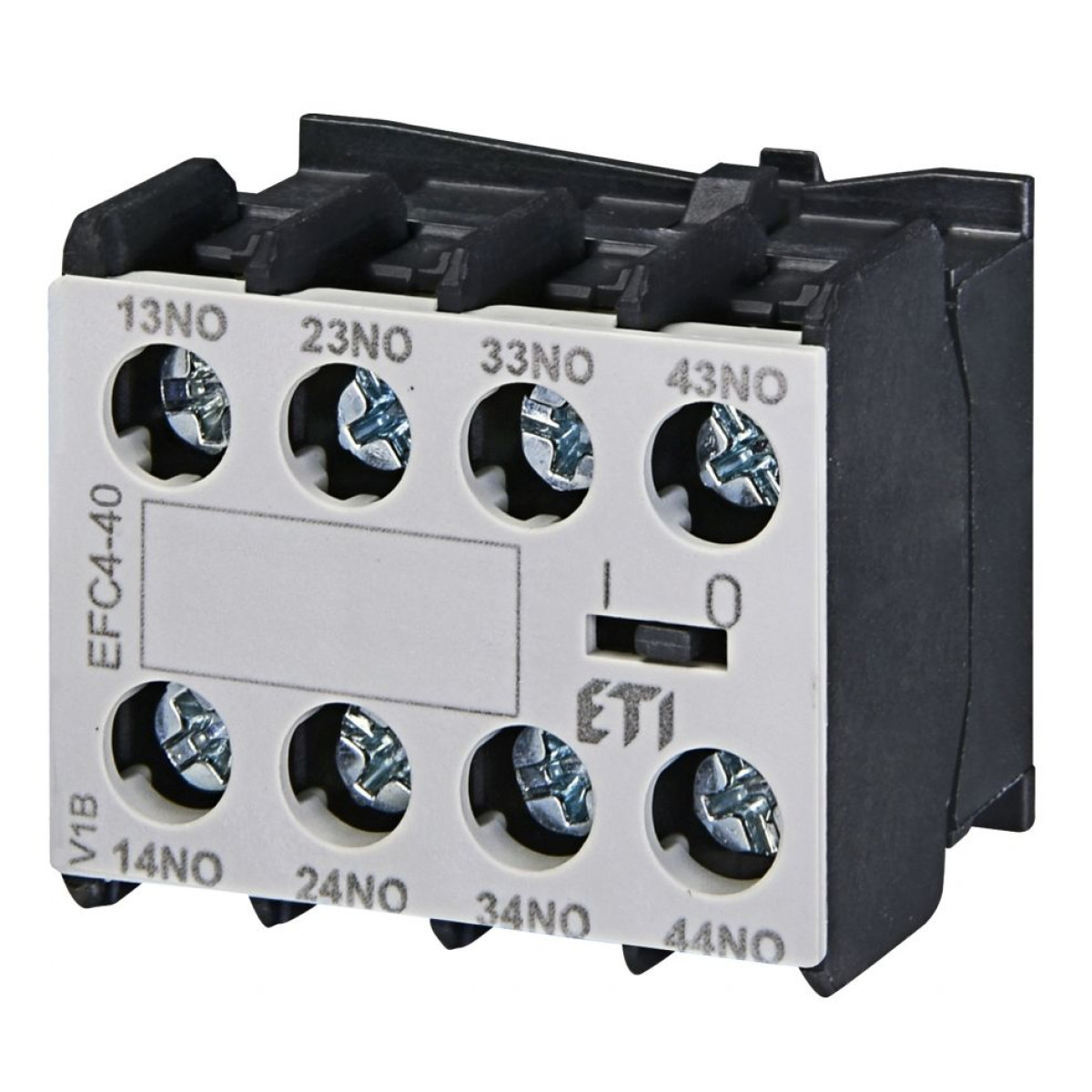 ETI Блок‑контакт EFC4‑40 (4NO, для 4‑полюсних CEC4) — фронтальний додатковий модуль із чотирма нормально відкритими контактами. Ідеально підходить для повноцінної індикації стану ввімкнення в потужних 4‑полюсних щитах, включаючи СЕСА.Переваги та гарантія