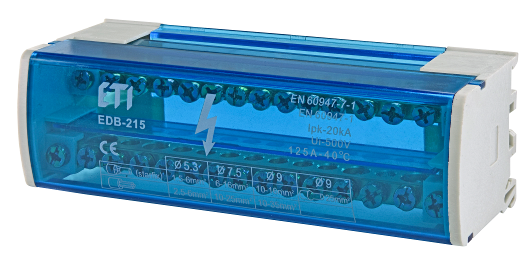Блок розподільчий ETI EDB-215 2p, L+PE/N, 125A (15 виходів) (001102302)
