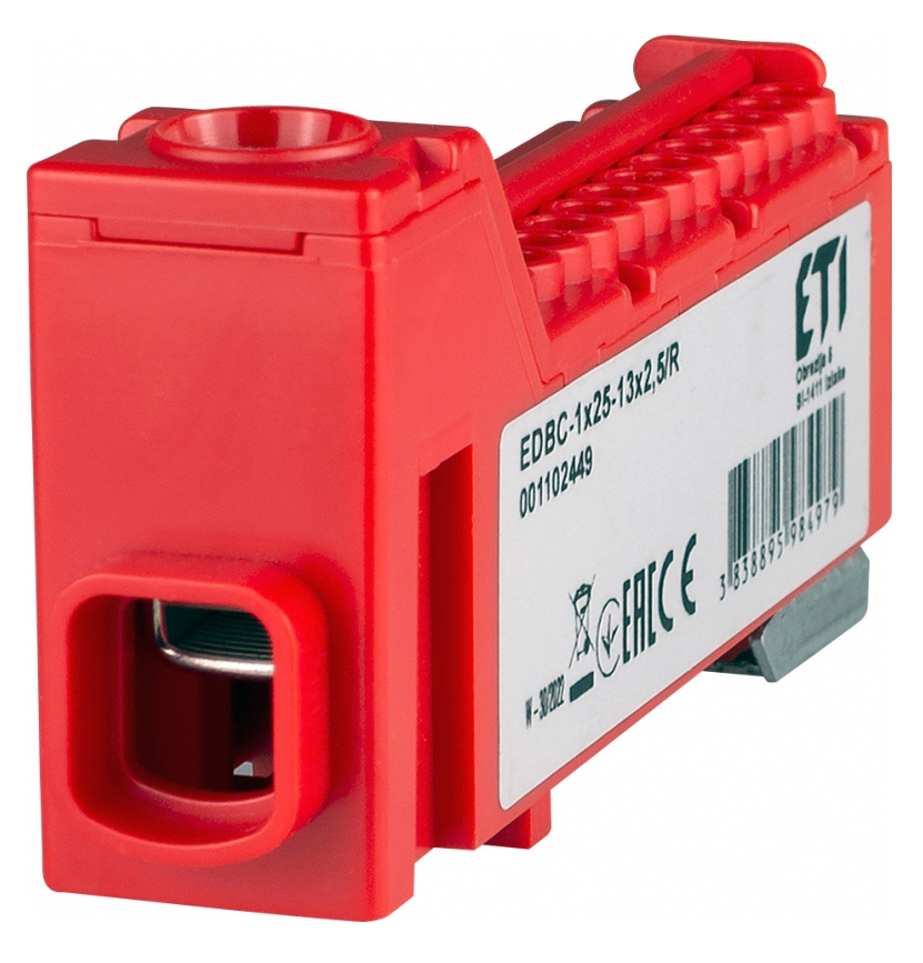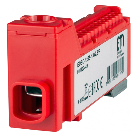 ETI EDBC-1×25-13×2,5/R — це компактний однополюсний розподільчий блок для мереж змінного (AC) або постійного (DC) струму з високою напругою до 1000 В AC або 1500 В DC. Призначений для розгалуження струму до 63 А з одного входу (до 25 мм²) на 13 виходів до 2,5 мм². Завдяки червоному кольору корпусу легко ідентифікується як фазний провідник у системах з кількома лініями.Переваги та гарантія