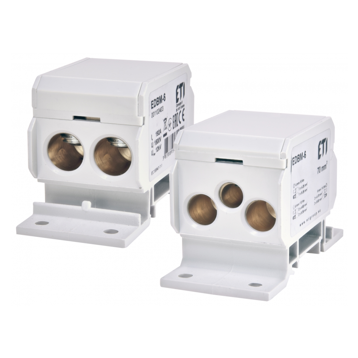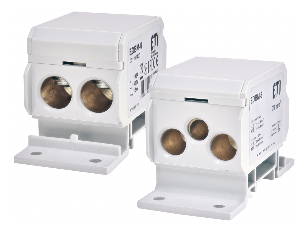 ETI Блок розподільчий EDBM-6 — компактний блок для розподілу електроживлення в системах до 192 А. Підходить для підключення декількох кабелів великого перетину.Переваги та гарантія