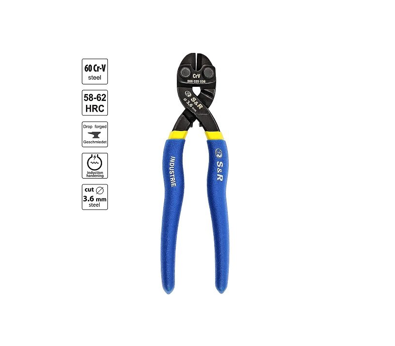 Болторіз S&R TIGER 200 мм призначений для різання товстого дроту діаметром до 3,6 мм, заклепок. Даний інструмент має компактні габарити: 200х51х18 мм, що дозволяє його легко транспортувати, при зберіганні він не займе багато місця. Завдяки порівняно невеликій масі 330 грам користувач довше не відчуває втоми при тривалому використанні. Болторіз виготовлений з високоякісної сталі, ріжучі кромки виконані з хром-ванадієвої загартованої индукционно сталі для тривалого терміну служби. Для захисту від корозії металеві частини були оброблені за допомогою фосфатування і гальванічного покриття. Купити болторіз S & R TIGER 200 мм рекомендується для побутового та професійного використання.Переваги та гарантія