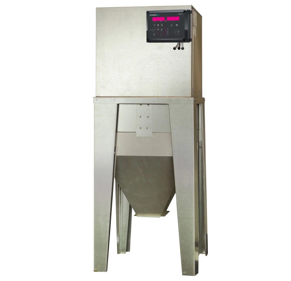 Ваги для зважування кормів PFB (місткість бункера 35 або 70 літрів) реєструють кількість поданого корму на основі високоточних вагових вимірювань. На дисплеї відображається інформація про кількість спожитого корму та води. Обидва вагових дозатора мають мікросхему пам'яті, в якій зберігаються всі налаштування, щоб гарантувати, що навіть у разі зникнення напруги ці налаштування будуть збережені. Обидва типи ваг незалежно керують одним шнеком силосу. Витрати на корм є важливим фактором для будь-якої ферми. Підключення вагових дозаторів кормів Stienen BE до комп'ютера управління кормами Stienen дозволяє контролювати цю статтю витрат максимально ефективно і ретельно. Змішування декількох інгредієнтів, дозування для різних груп тварин, управління запасами в силосах і управління тваринами - це лише деякі з можливих функцій. А чіткий огляд поточної ситуації у вашій системі годівлі завжди знаходиться в межах легкої досяжності.Переваги та гарантія