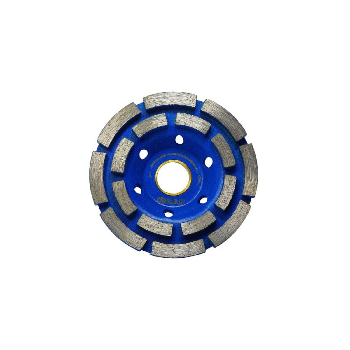 S & R Meister 100x22,2 мм - шліфувальний диск алмазний для обробки бетонних і кам'яних поверхонь. Чудово підходить для грубої обробки твердого матеріалу. Чашковий алмазний шліфувальний диск S & R Meister 100x22,2 мм складається з 16 сегментів з алмазним напиленням, які розташовані в 2 ряди. Товсті сегменти забезпечують довгий термін експлуатації кола. Спеціальні отвори по периметру забезпечують гарне охолодження для тривалої роботи. Алмазний шліфувальний круг є витратним інструментом для кутових шліфувальних машин болгарок, а також для шліфувачів по бетону.Переваги та гарантія