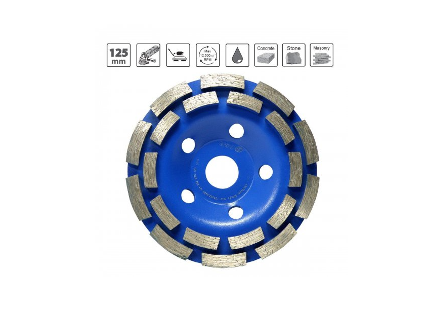Запитання Чашка алмазна Meister 125 х 22,2 мм дворядна шлiф. по бетону 20 сегм. S&R (252978125)