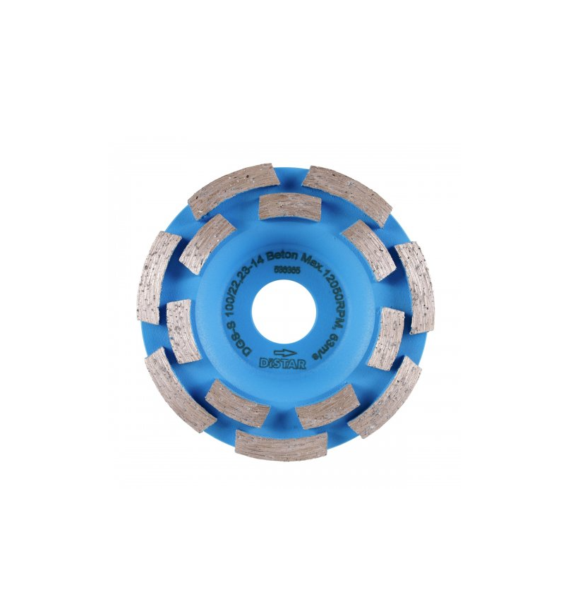 Чаша алмазна шліфувальна Distar 100x22.2 ФАТ-С Beton - призначена для грубого шліфування бетонних (зокрема й армований бетон), кам'яних поверхонь. Підходить також для зняття напливів при заливці опалубки тощо. Особливості алмазної чаші Дістар Distar 100x22.2 ФАТ-С Beton: Діаметр - 100 мм. Посадковий отвір - 22,23 мм. Призначена для встановлення на болгарки (КШМ) 100-125 мм. Має 2 ряди алмазних сегментів на легкій металевій основі - для найкращої продуктивності. Допускається використання зі швидкістю - до 12050 об/хв.Переваги та гарантія