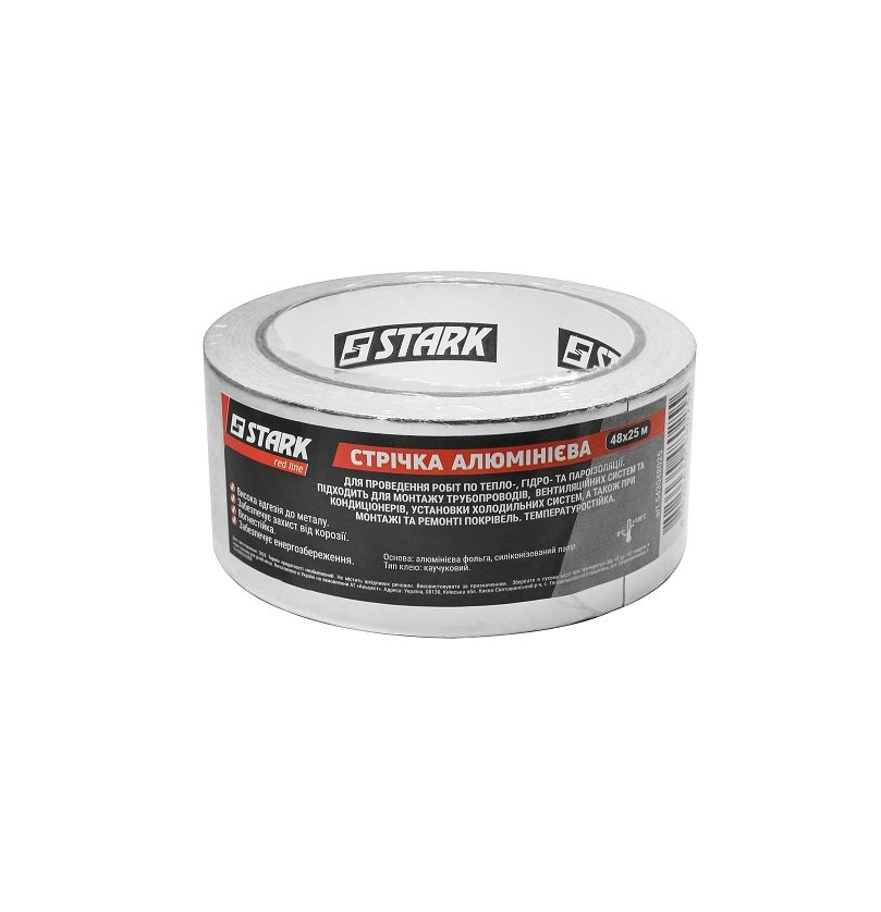 Характеристики Cтрічка алюмінієва клейка 48мм 25м, STARK (543048025)