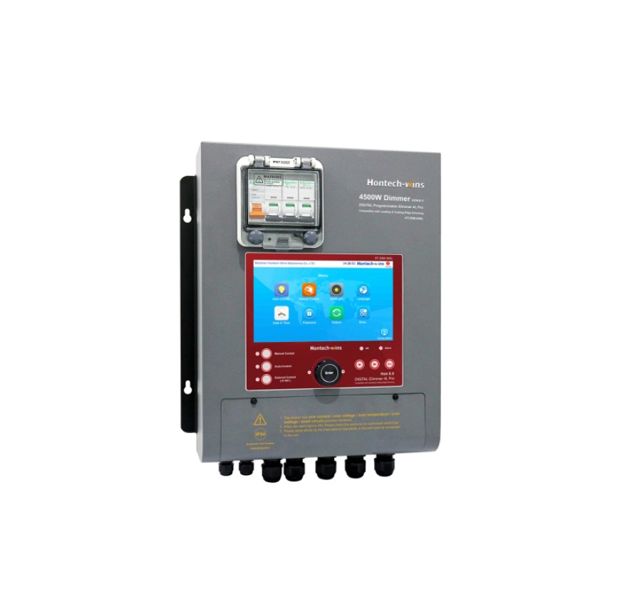 Програмований димер 4L, 4500 Вт, 180-240 В змінного струму, 50/60 Гц.З сигналом 0-10 В для керування іншою системою 0-10 В. Екран з яскравістю, потужністю, напругою, струмом; Автоматичне та ручне регулювання яскравості від 0 до 100%. Налаштування плану освітлення за годинами/днями/яскравістюПереваги та гарантія