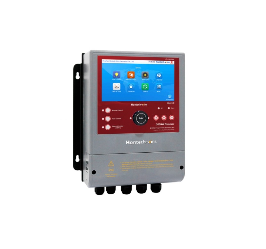 Програмований димер 3L, 3000 Вт, 180-240 В змінного струму, 50/60 Гц. З сигналом 0-10 для керування іншими системами 0-10 В. Екран з відображенням яскравості, потужності, напруги і струму; Автоматичне та ручне затемнення від 0 до 100%. Налаштування плану освітлення по годинникам/дням/яскравості.Переваги та гарантія