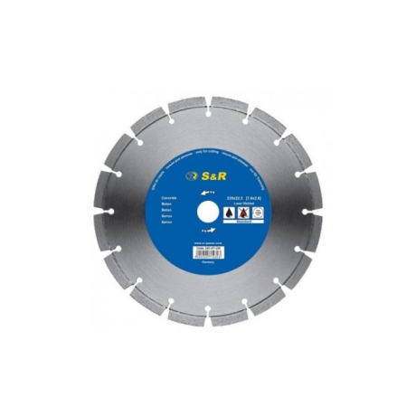 Диск відрізний сегментний S & R Standart для виконання помірних і разових обсягів роботи з різання асфальту, піщанику абразивного, цегли силікатної, цегли вогнетривкої абразивного, штукатурки, покриття для підлоги, сирого бетону. Може застосовуватися для обробки твердого пісковика, цегли обпаленого, черепиці, бетону пористого. Ефективний в разі необхідності виконання підрізних робіт при кам'яній кладці, облицювальних будівельних і ремонтних роботах. Диск відрізний сегментний S & R по абразивних матеріалів Standart виготовлений з високоякісної сталі алмазне зерно зі зв'язуючим матеріалом і має: сегментну різальну кромку для роботи як з примусовим охолодженням, так і без нього; високий ресурс ріжучих сегментів; ідеальну балансування; високу швидкість різання. Диск відрізний сегментний S & R по абразивних матеріалів Standart підходить для кутових шліфувальних машин, борозноробів.Переваги та гарантія