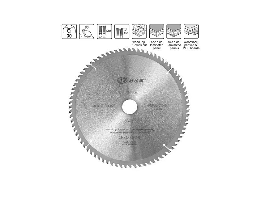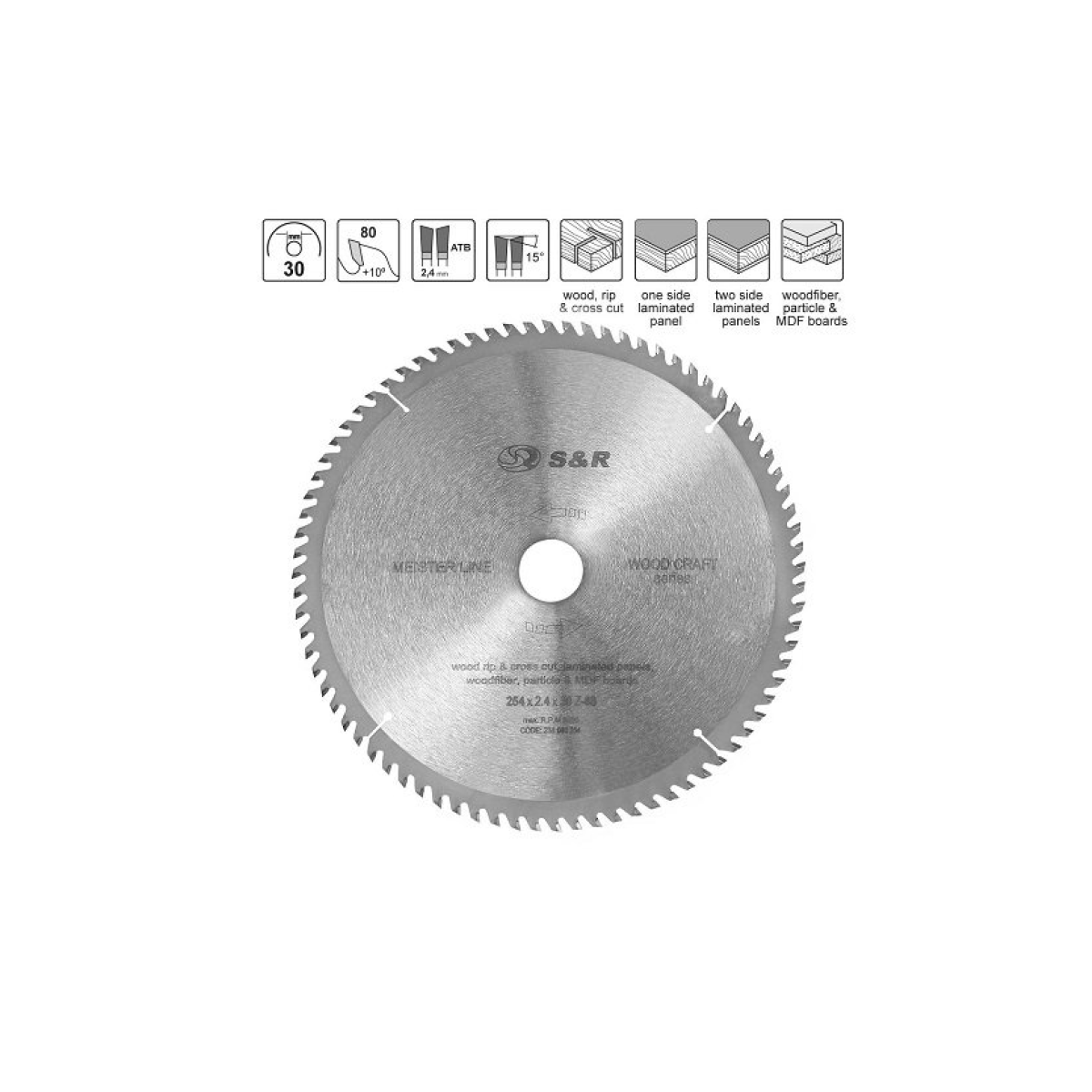 Диск пиляльний S&R WoodCraft Meister 254x30x2,6мм АТВ 80 зуб. - призначений для різання твердих і м'яких порід деревини, панелей ДСП, ДВП, МДФ і т.п. Працює даний інструмент разом з дисковими пилами, торцювальними пилами, циркулярними пилами і т. п. Підходить для виконання поперечного та поздовжнього різу. Модель має форму зубів АТВ (зі змінним скосом 15 градусів то на одну, то на іншу сторону), що забезпечує чистий, рівний різ без сколів. Усього на диску 80 зубів. Діаметр диска 254 мм, розмір отвору - 30 мм. Товщина металу - 2,6 мм, що дозволяє працювати з диском для пили тривалий час без деформацій і швидкого зносу.Переваги та гарантія