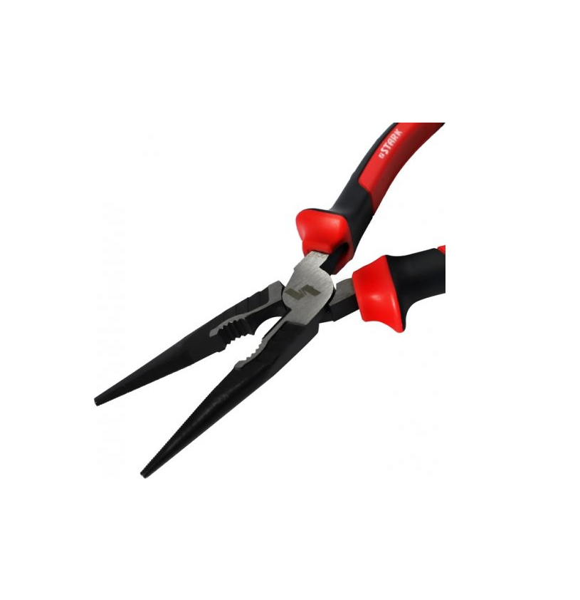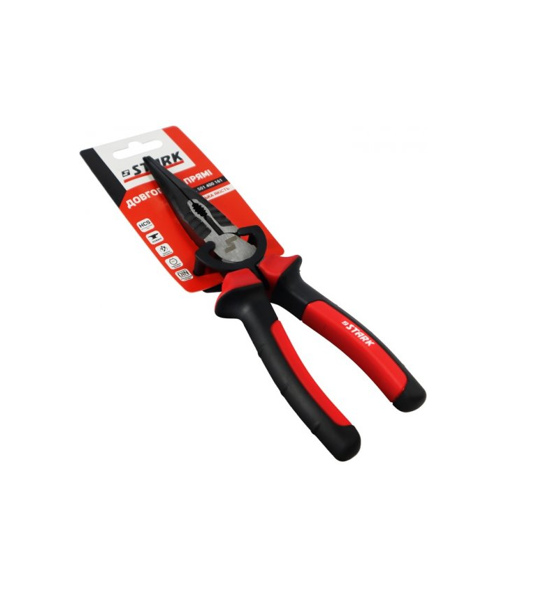 Довгогубці Stark прямі 180 мм - шарнірний інструмент для захоплення і маніпулювання дротом, дрібними деталями, заготовками. Особливості довгогубців Штарк 180 мм: Виготовлені з міцної високовуглецевої загартованої сталі методом кування. Губки додатково загартовані індукційним струмом, мають нікельоване покриття. Дозволяють перерізати дроти, кабелі діаметром до 10 мм. Максимальний розкрив губок - 55 мм. Рукоятки ергономічної форми, виготовлені з міцного рифленого пластику.Переваги та гарантія