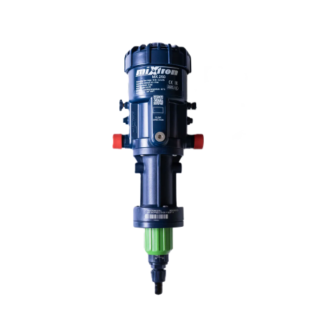 Дозатор Mixtron MX.250.P022 – це високоефективний дозуючий насос, створений для точного регулювання концентрації рідин у промислових, сільськогосподарських та водоочисних системах. Завдяки продуктивності до 2500 л/год та гнучкому діапазону дозування від 0,2% до 2%, цей насос забезпечує стабільну роботу навіть у складних умовах. Використання тільки гідравлічного тиску для роботи робить його енергонезалежним і простим в експлуатації.
