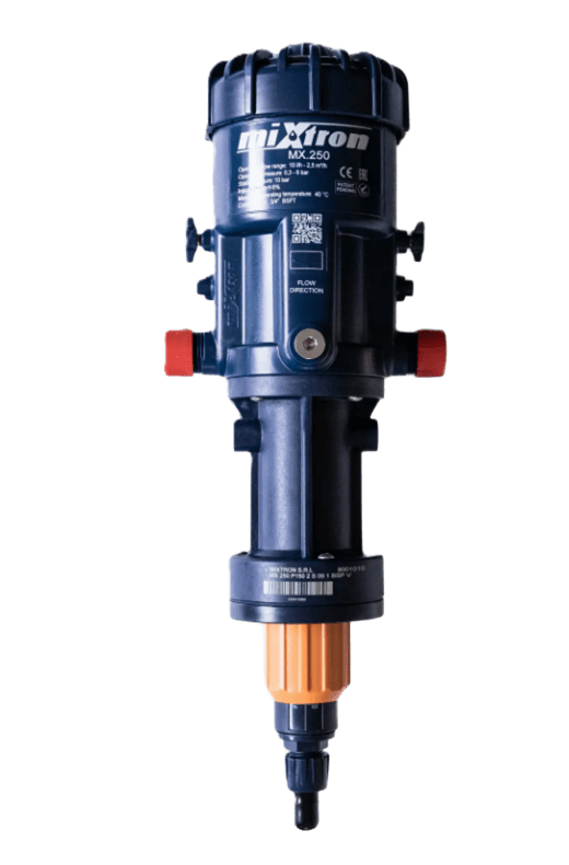 Дозатор Mixtron MX.250.P150 – це високоефективний дозуючий насос, створений для точного регулювання концентрації рідин у промислових, сільськогосподарських та водоочисних системах. Завдяки продуктивності до 2500 л/год та гнучкому діапазону дозування від 1% до 5%, цей насос забезпечує стабільну роботу навіть у складних умовах. Використання тільки гідравлічного тиску для роботи робить його енергонезалежним і простим в експлуатації.
