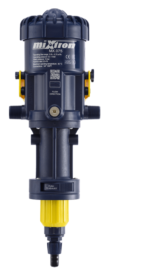 Mixtron Extreme 0,5 - 4 % – це високоточний насос-дозатор, який забезпечує ефективне та безпечне дозування рідин без потреби в електроживленні. Його робота заснована на гідравлічному принципі, що гарантує стабільність і точність дозування навіть при змінному потоці води.