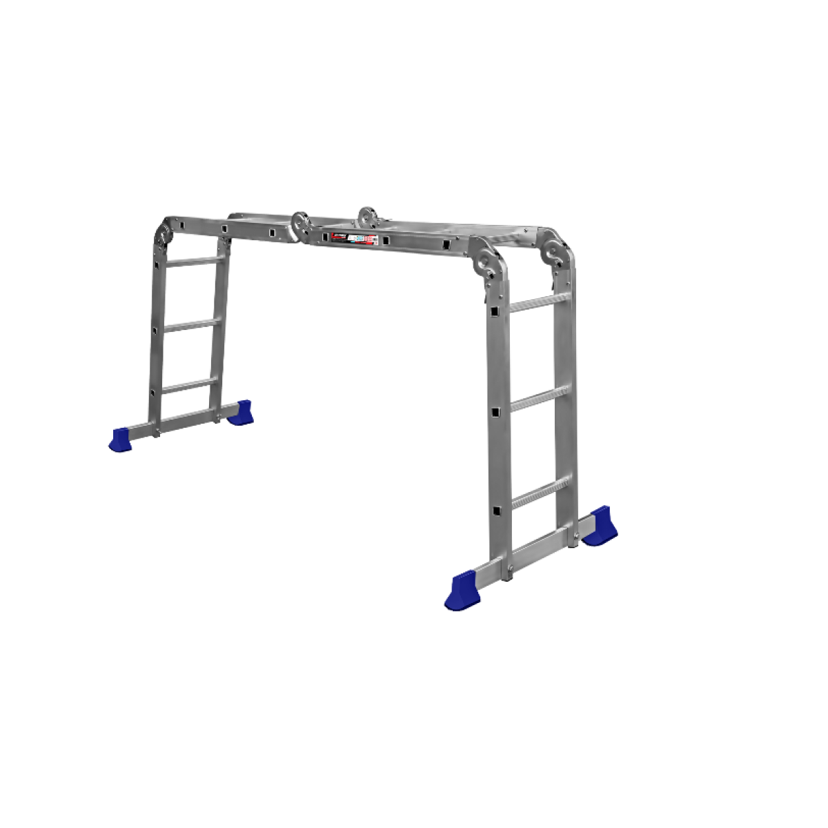 Stark SAT 4х3 - алюмінієва 4-х секційна драбина для ремонту, будівництва, і господарського застосування. Виготовлена з міцного алюмінієвого профілю, дозволяє працювати на висоті до 4,44 м. Універсальна драбина, яка складається з 4 секцій по 3 сходинки. Драбину можна використовувати для різних цілей: як двосторонню драбину по 6 ступенів з кожного боку з загальною висотою 177 см; як поміст заввишки 94 см; як суцільну сходи висотою 3,54 м. Сходинки шириною 32 см дає можливість зручно стає, і працювати на сходах. Сходи Stark SAT 4х3 виготовлена з міцного алюмінієвого профілю з параметрами 63х25 мм, що дозволяє витримувати до 150 кг. Для компактного зберігання та перевезення сходи складається до висоти 94 см і важить всього 10,8 кг. Сходи-трансформер Stark SAT 4х3 зручний інструмент для роботи на будівельному, ремонтному та монтажному об'єкті. Завдяки різним формам установки легко використовувати в різних сферах діяльності, в різних приміщеннях на висоті до 4,44 м.Переваги та гарантія