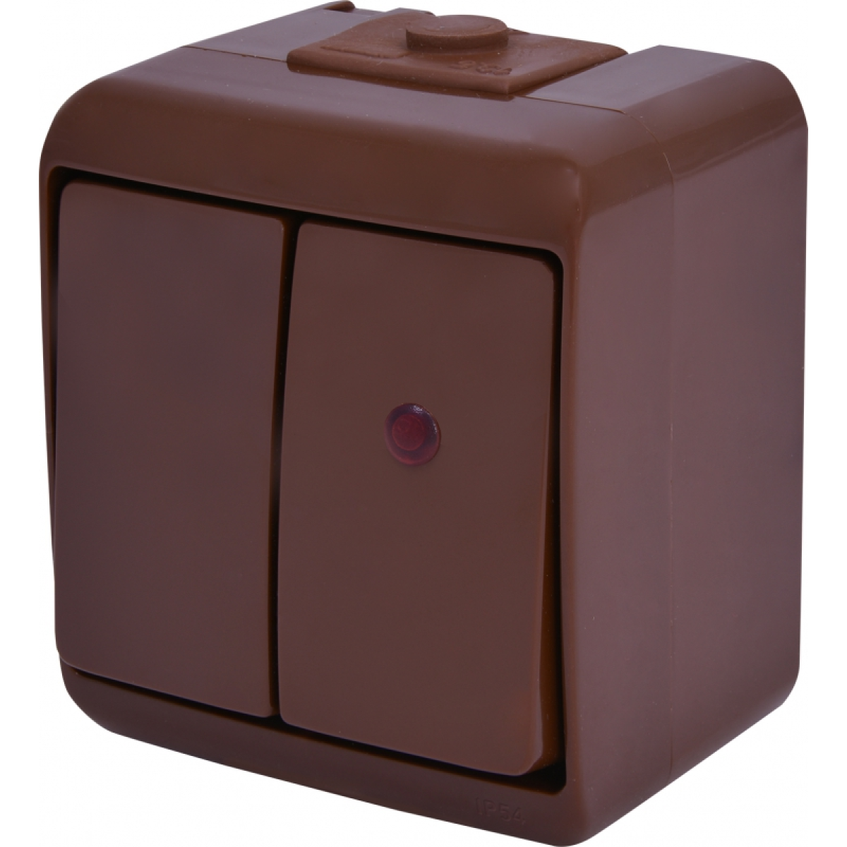 Характеристики Двоклавішний вимикач ETI VHE-2L-KR (коричневий, IP54) підсвітка (004668047)