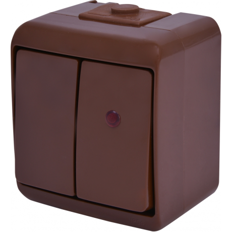 Двоклавішний вимикач ETI VHE-2L-KR (коричневий, IP54) підсвітка (004668047)
