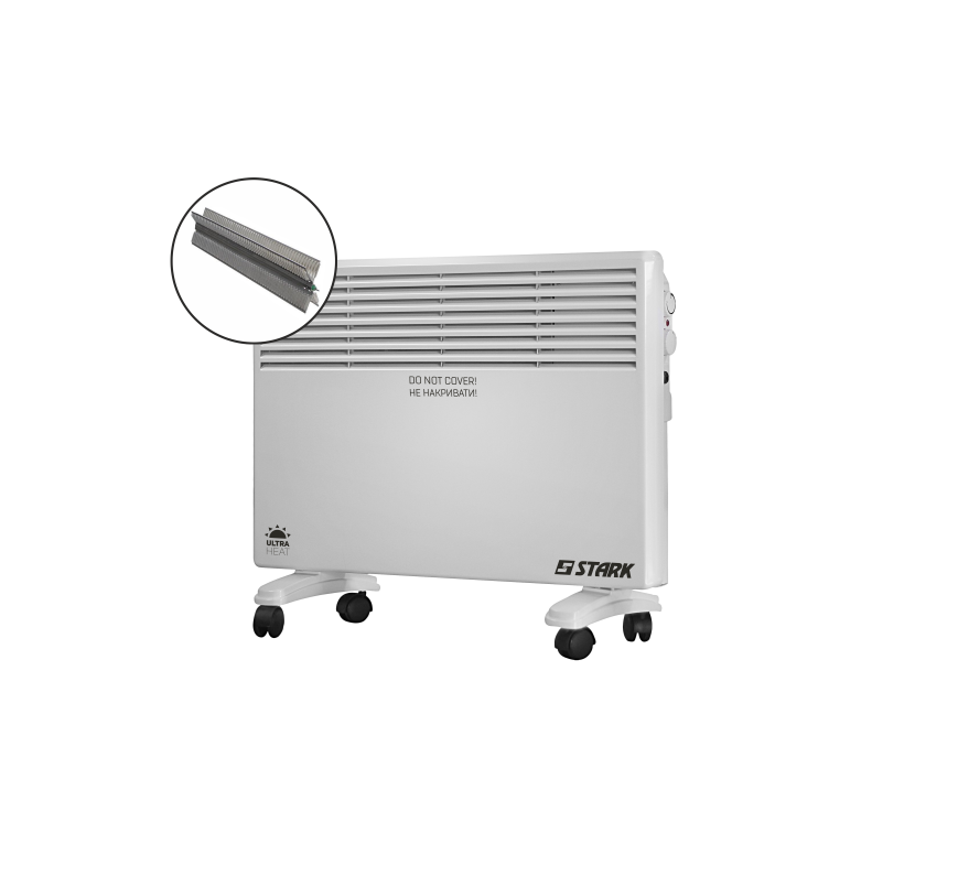 Електричний конвектор STARK PH-1500X 1500 Вт — електроприлад для обігріву офісних, побутових приміщень площею до 24 м2. Забезпечує рівномірне та швидке нагрівання повітря. Конвектори Stark комплектуються закритим теном, який має суттєві переваги, а саме - можливість використання навіть у ванних кімнатах; такі тени не пересушують повітря, так як не мають відкритих спіралей, як у більш дешевих конвекторів. Вони дуже економні та мають більшу тепловіддачу за рахунок додаткових ребер нагрівання тену. Особливості конвектора Штарк PH-1500X 1,5 кВт: • Потужність електроконвектора – 1,5 кВт. • Доступні 2 режими роботи: 750 Вт та 1500 Вт. • Закритий тен. • Модель оснащена цільнолитим Х-подібним нагрівальним елементом. • Наявність регульованого термостата дозволяє виставляти та підтримувати оптимальну для користувачів температуру в приміщенні. • Захист від перегріву сприяє тривалому терміну служби та забезпечує додаткову безпеку використання електроприладу. • Наявність індикатора увімкнення – для простого контролю роботи електроконвектора. • 2 типи установки: кріплення на стіну та підлогова установка (ніжки-опори з коліщатками входять до комплекту поставки). • Компактний дизайн. • Маса – 3,8 кг.Переваги та гарантія