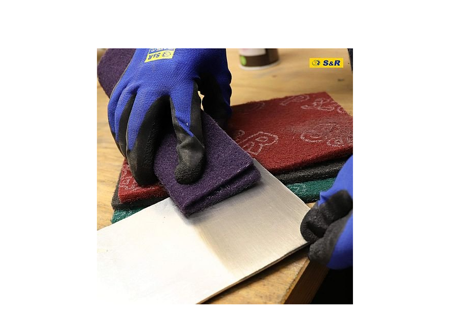 Set of S&R hand pads 15 pcs 150 x 230 mm - designed for grinding, removing paint and varnish coatings on metal and wooden surfaces. Each pad (polyester abrasive disc) is a small sponge measuring 150x230 mm, made of non-woven material, where each villi is covered with abrasive particles. Such material has a long service life, it practically does not clog, does not get wet, is easy to clean. The set includes 15 sponges with 5 types of grit (for each stage of processing: from paint removal to final grinding): Pad with grit size P240 - 3 pcs. Pad with grit size P280 - 3 pcs. Pad with grit size P320 - 3 pcs. Pad with grit size P600 - 3 pcs. Pad with grit size P1000 - 3 pcs.Benefits and warranty