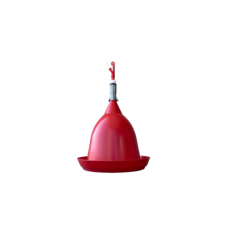 Automatic drinking trough a bell ideal for 60/80 hens or adult breeders. The trough operates suspended from the ground and is equipped with an automatic valve that regulates the water level. In addition, it comes complete with suspension cord, adjusting eyelets and hose guide, hose holder for 6×9 mm and 12x17 mm hoses and assembly instructions. The trough is made of high-quality plastic and is easy to clean. For this reason, the professional poultry sector also uses it frequently. Attention: the trough requires a water pressure of between 0.2 and 0.5 bar (0.3 bar recommended). As the pressure increases, the minimum amount of water inside the trough decreases.Benefits and warranty