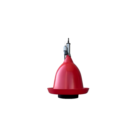 Automatic drinking trough a bell with ballast bucket and side valve, ideal for 60/80 laying hens or adult breeders. The trough works suspended or placed on the ground and is equipped with an automatic valve that regulates the water level. It also comes complete with suspension cord, adjusting eyelets and hose guide, hose holder for 6×9 mm and 12x17 mm hoses and assembly instructions. The trough is made of high-quality plastic and is easy to clean. For this reason, the professional poultry sector also uses it frequently. Attention: the trough requires a water pressure of between 0.2 and 0.5 bar (0.3 bar recommended). As the pressure increases, the minimum amount of water inside the trough decreases.Benefits and warranty