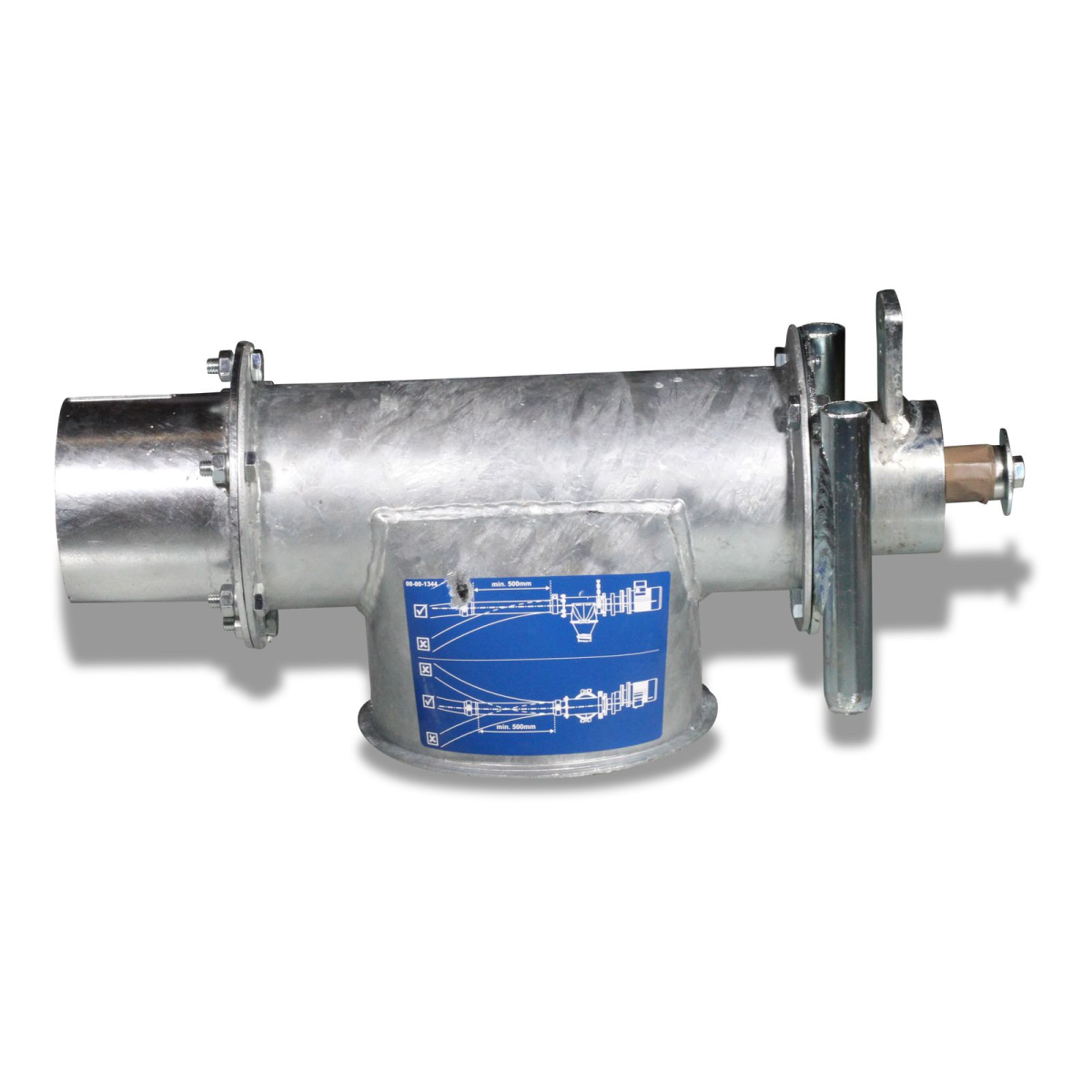 Drive unit with V-belt without engine, Flex-Vey 90, art. 25-61-3055, a product made of galvanized welded steel of a cylindrical shape, with a welded galvanized funnel, with couplings for fastening, intended for the feed supply system in the livestock premises. Produced by Big Dutchman INTERNATIONAL GMBH. Length 432.00 mm, Width 156.00 mm, Height 193.00 mm, Actual weight 18.420 kg.Benefits and warranty