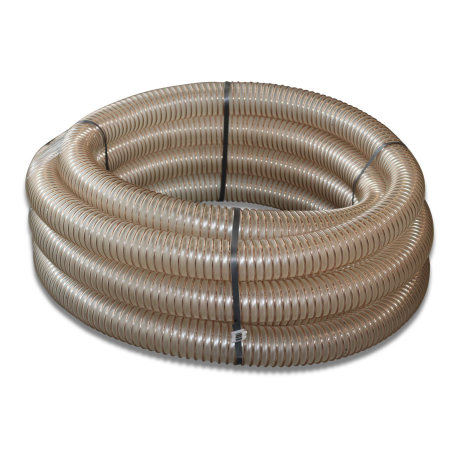 Spiral hose DN75 PUR-MH. 25-57-3127, is a plastic flexible hose with a diameter of 75 mm, without fittings, made of polyurethane (pu)-plastic) by the casting method, with further metal reinforcement for the "flex-vey 75" feed storage and feeding system.Benefits and warranty