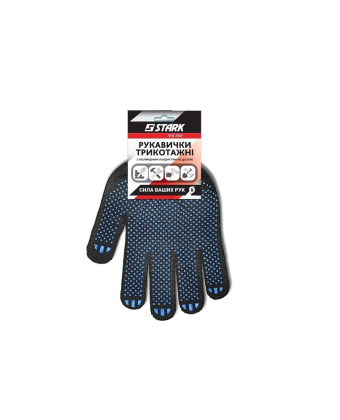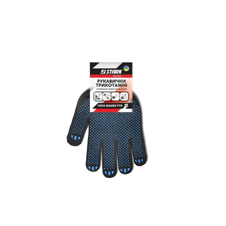 Stark Black 6 threads - PVC coated gloves for hand protection during various mechanical work in construction, painting, repair work. The set includes 10 pieces, which is enough for a team of workers or for long-term use by 1-2 workers. Made by knitting with 6 threads of 70% cotton and 30% polyester. The cuff of the glove has an elastic band that is conveniently fixed on the hand. Large PVC dots are applied to the work surface to prevent slipping. The high density of 250 tex provides the glove with good wear resistance and makes it possible to work in the cold season. Knitting class 7 means that the gloves are elastic and will fit well on the hand.Benefits and warranty
