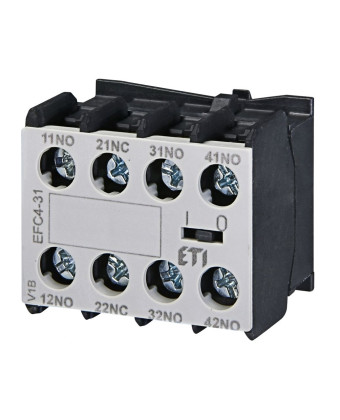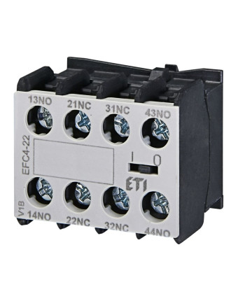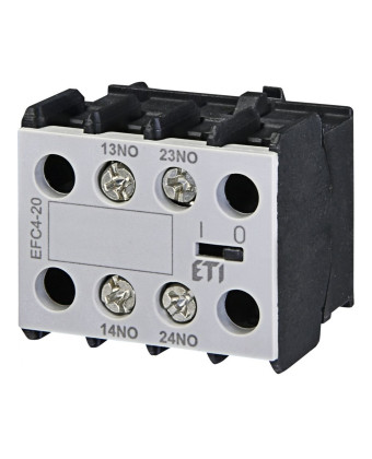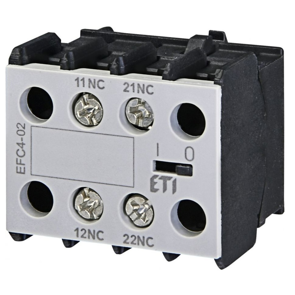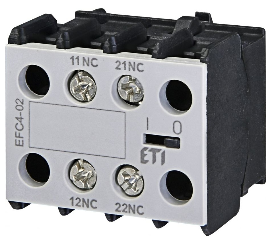 ETI Auxiliary Contact Block EFC4‑02 (2NC, for 4‑pole CEC4 contactors) — front‑mounted module with two normally closed contacts for 4‑pole systems. Ideal for emergency state monitoring or safe disconnection in high-power panels and installations.Benefits and warranty