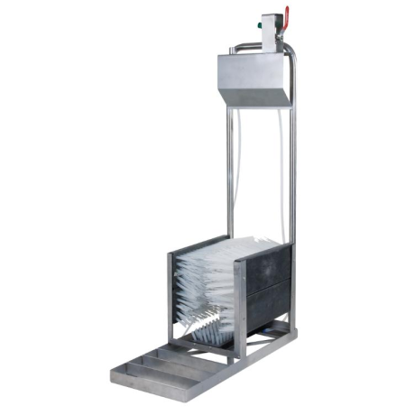 Boot cleaner made of stainless steel, to thoroughly and quickly clean boots; the combination of bristles, water and movements between the bristles ensures the effective removal of dirt.The thorough cleaning of boots prevents the introduction of diseases.Benefits and warranty
