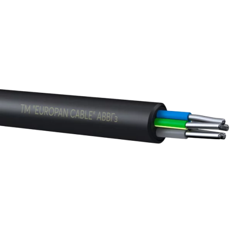 Cable AVVGz 4x185 power EUROPAN CABLE AVVGz – Power cable with aluminum conductors, polyvinyl chloride insulation, with filling of the space between the insulated conductors. Scope Designed for transmission and distribution of electrical energy in stationary installations at a nominal alternating voltage of 0.66; 1 kV, frequency 50 Hz. It is used when laying in blocks, on specialized cable trestles, can be used in industrial premises, in distribution and lighting devices, as well as in ordinary residential premises as electrical wiring, widely used in summer cottage construction. It is not recommended to lay the cable in the ground, since it is devoid of armored protection, therefore it can only be laid with mechanical protection. Construction Conductor cores - aluminum, single-wire or multi-wire (class 1, 2 DSTU EN 60228). Insulation and sheath - polyvinyl chloride plastic compound. Operation The cable is intended for stationary operation at ambient temperatures from -50°C to +50°C, relative humidity up to 98% at temperatures up to 35°C, including for laying outdoors. The cable can be laid without preheating at temperatures not lower than -15°C. The minimum bending radius during installation must be at least 10 times the outer diameter of a single-core cable and 7.5 times the outer diameter of a multi-core cable. The continuous permissible heating temperature of the cable cores during operation is 70°C and the maximum permissible temperature at short-circuit currents is 160°C. Permissible heating of cable cores in emergency mode is no more than 80°C.Benefits and warranty