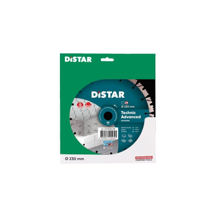 Distar 1A1RSS-C3 Technic Advanced is a diamond blade for cutting concrete, paving slabs, bricks, reinforced concrete, and black granite. The Distar 1A1RSS-C3 Technic Advanced blade cuts hard materials smoothly and quickly thanks to its 12 mm segment height. The special shape of the segment ensures good cooling of the blade, so it can be used not only with angle grinders but also with wall chasers. The 2.6 mm segment thickness ensures a long service life. Distar 1A1RSS-C3 Technic Advanced is a universal diamond cutting disc for construction and repair work with a long service life.Benefits and warranty