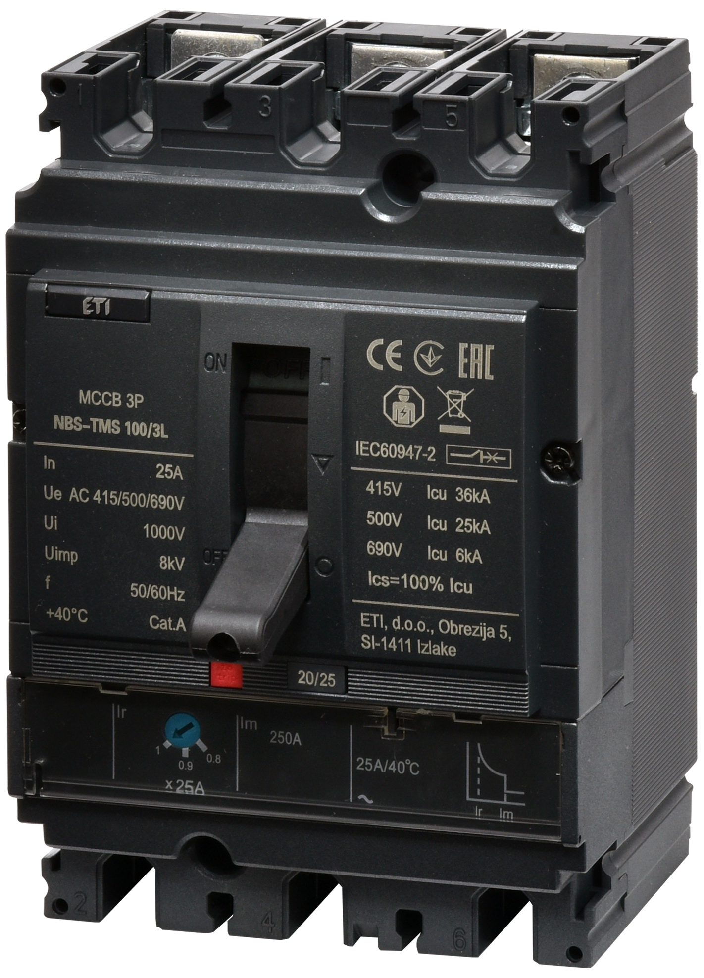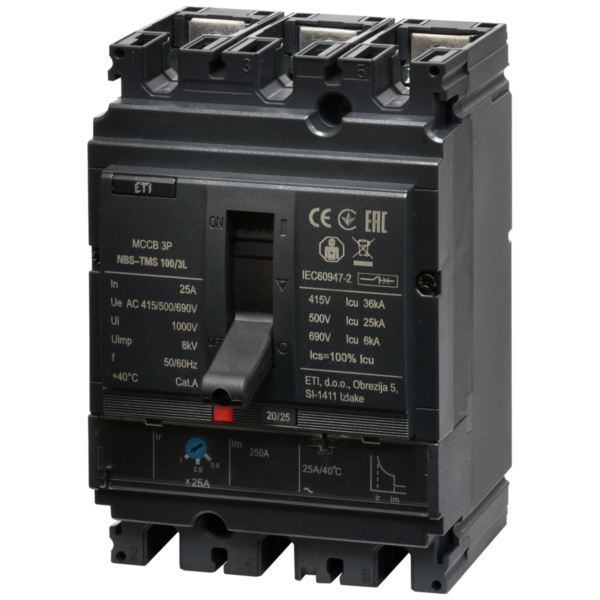 ETI Circuit breaker NBS-TMS 100/3L 25A (36kA, (0.8-1)In/fixed) 3P 004673010Benefits and warranty