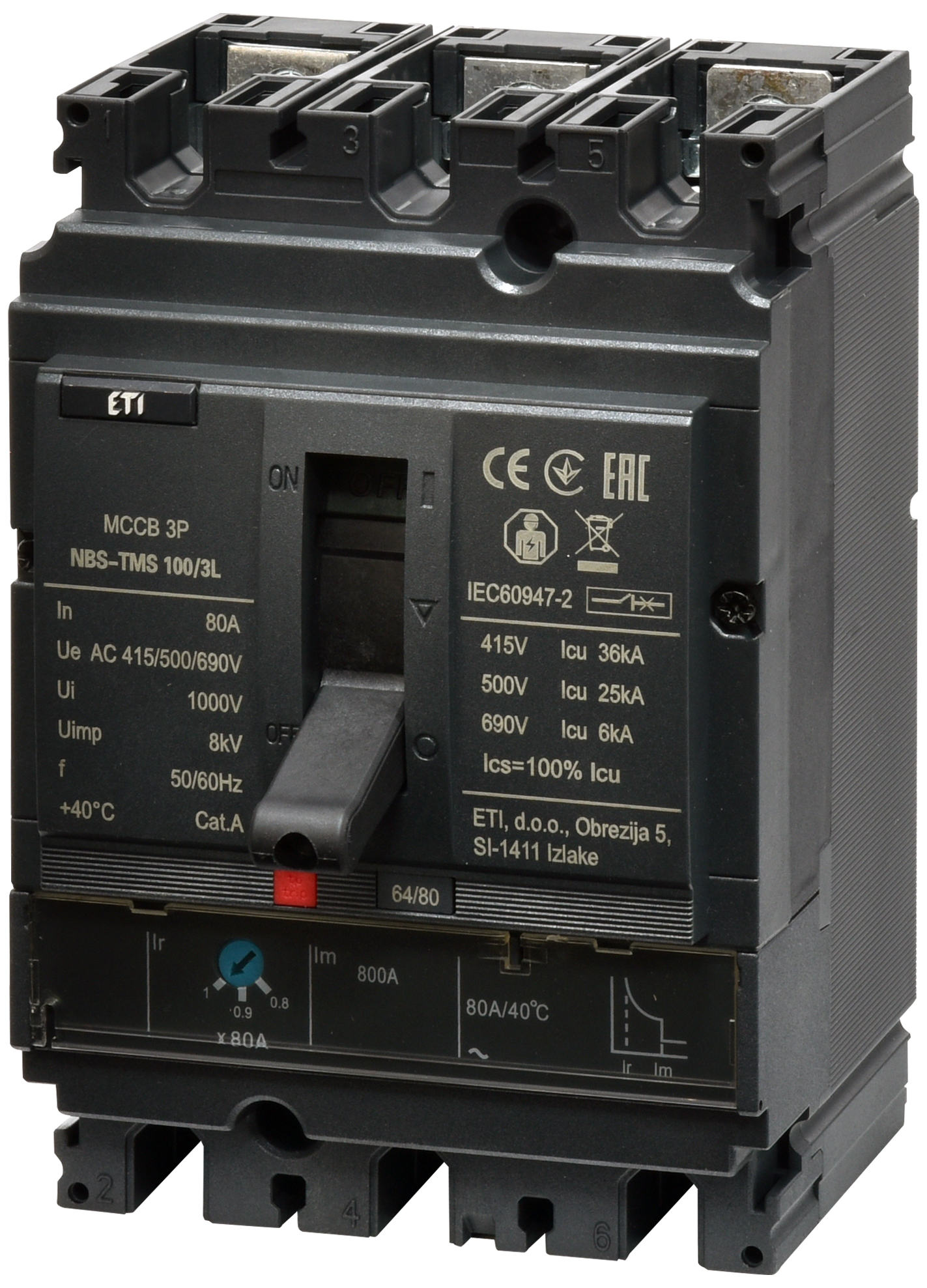 ETI Circuit breaker NBS-TMS 100/3L 80A (36kA, (0.8-1)In/fixed) 3P 004673006Benefits and warranty