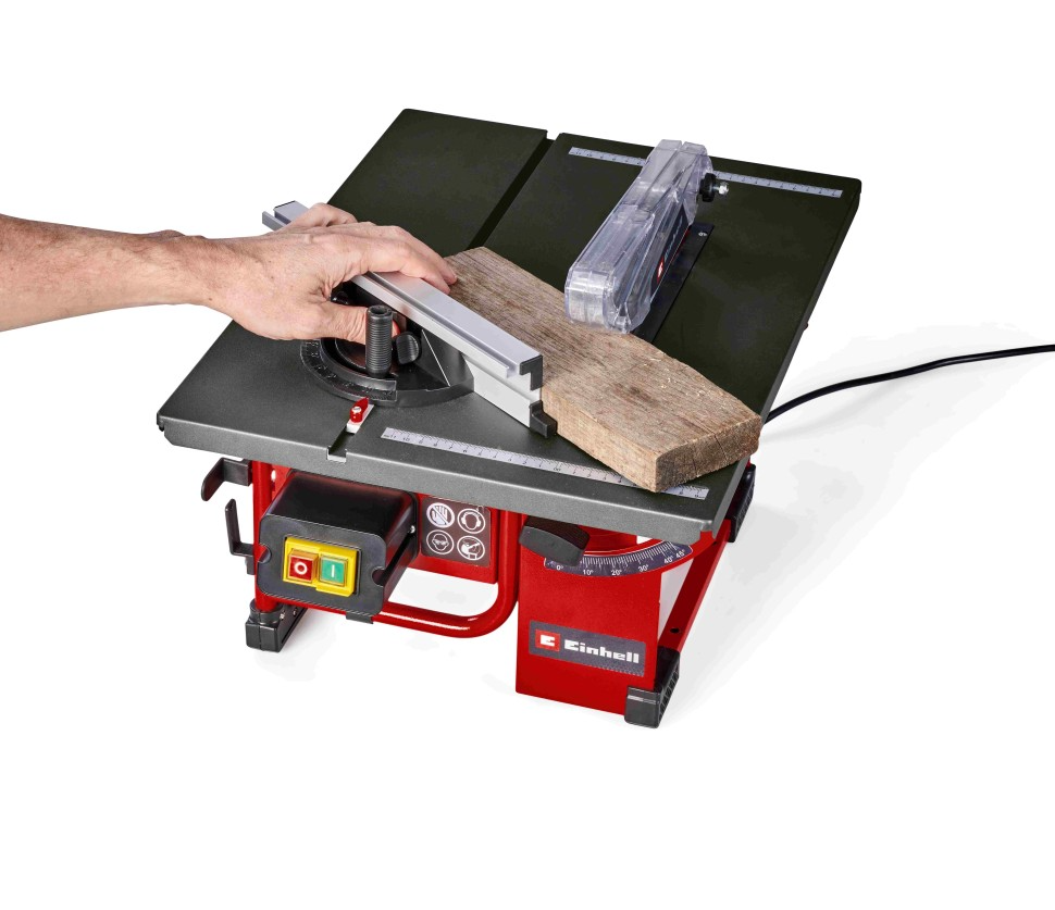 The Einhell TC-TS 8 I table saw is a compact and powerful tool for working with wood and wood-fiber materials. The asynchronous motor ensures smooth operation, and the steel work table and tubular frame provide stability. The saw blade tilts to the left by up to 45°, the parallel and angle stops allow for precise bevel cuts. The chip hole and cable holder keep the work area clean, and the carbide blade guarantees high-quality cutting. A workpiece pusher is provided for safety.Benefits and warranty