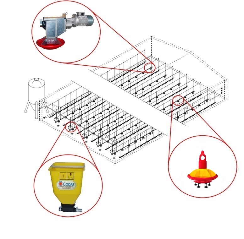 The Gio P/A auger feeder for broilers with automatic feed dosing (low cone) CODAF Italy