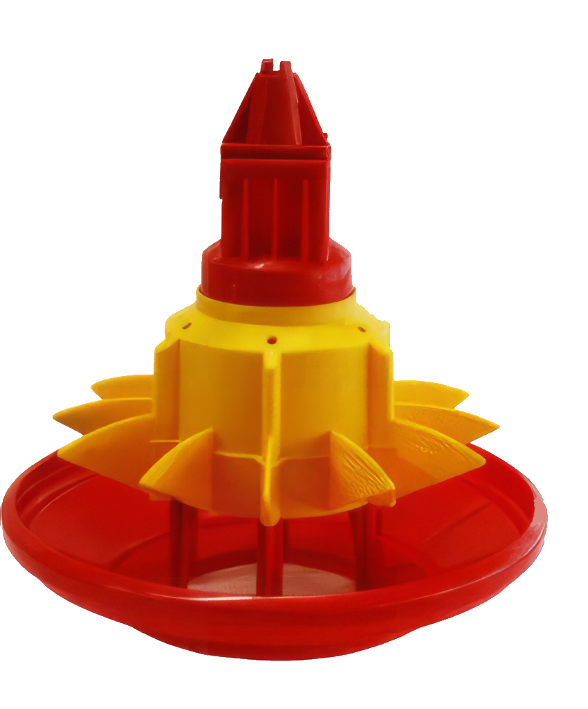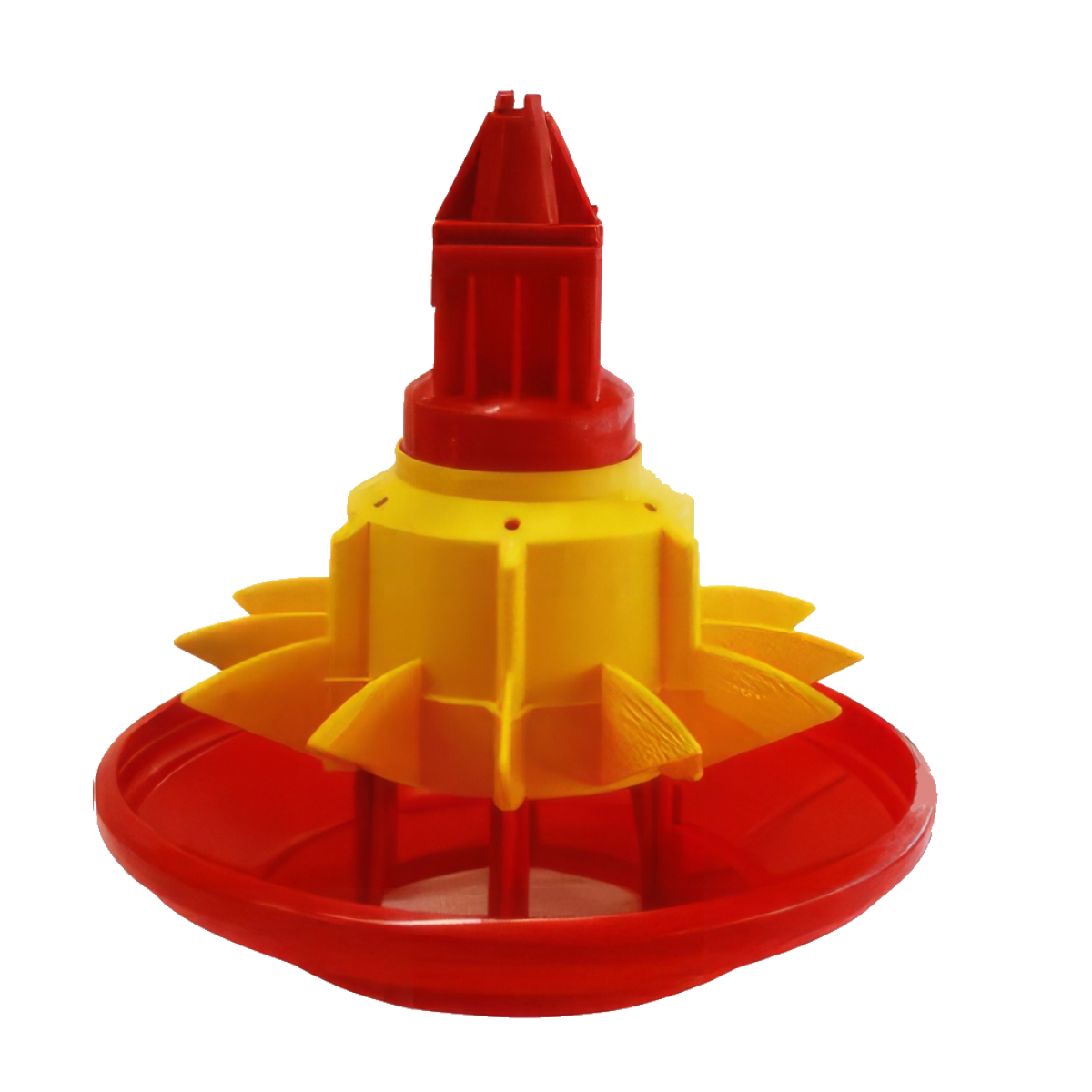 - the feeder has a high rim, which eliminates scattering and scattering of feed by chickens;