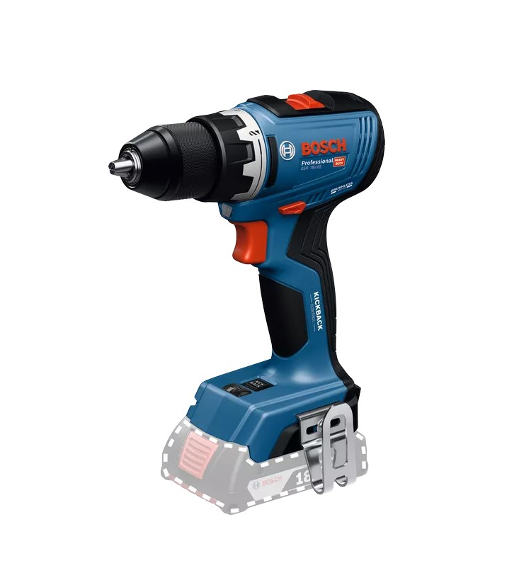 The Bosch GSR 18V-65 Professional drill/driver has the power to drive heavy screws and drill holes in metal, wood or plastic thanks to a torque of 31/63 N m and a speed of up to 2100 rpm. The convenient head allows you to work in tight spaces. The KickBack Control switch prevents the tool from suddenly kicking back, and two LEDs improve visibility in the work area.Benefits and warranty