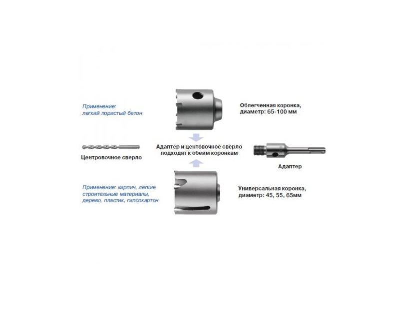 The universal S & R hollow core drill bit is used for fast drilling of large diameter holes in aerated concrete, brickwork, lightweight building materials, wood and plastic. The universal S & R hollow core drill bit allows you to save money as much as possible due to the possibility of using one set of accessories for different diameters of drill bits. The hollow core drill bit has: A convenient, lightweight design; A special geometry of the cutting teeth; A quick-release mounting for centering drill bits. The universal S & R hollow core drill bit is suitable for hammer drills from 2 to 4 kg with a SDS-plus or two-slot chuck type, drills with a three-jaw chuck and is used together with: an adapter with a hexagon with a M16 thread; a centering drill bit S & R for brick; centering drill S & R for wood and plastic ; adapter S & R SDS-plus 118 ; adapter with hexagon 118 ;Benefits and warranty