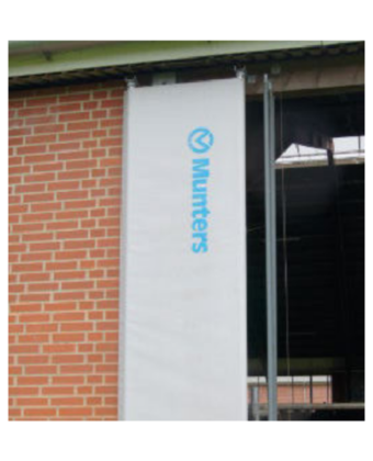 Made of durable, UV-resistant, PVC-coated polyester with optimal light transmission. Surface with antistatic qualities rejects dirt (straw, sand, dust). The MFP system is equipped with a stainless steel wire pulling system which operates vertically with a manual hand crank, winch motor or gear motor. The gear motor operates either manually with a manual controller or fully automatically, with an opening degree that can be individually determined by Munters Natural Center/Master climate control and by an optional wind and rain sensor. The curtain opens from top to bottom, folds lengthwise and lays fl at at the wall or plinth when fully open.Benefits and warranty