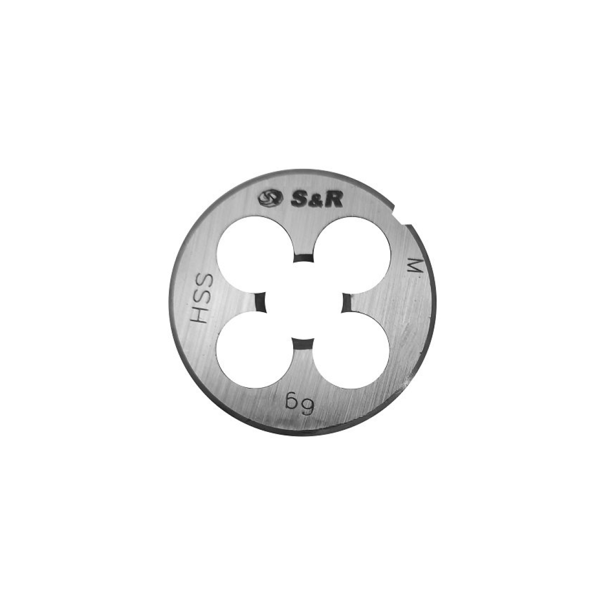 S & R M4x0.7 mm - round die for cutting external threads. Used in the workshop for professional and household tasks. The die is made of high-speed steel R6M5, which effectively cuts threads in all cylindrical parts of lower hardness. S & R M4x0.7 mm is widely used in repair and production work at service stations, in workshops, as well as in other areas where thread cutting or restoration is required.Benefits and warranty